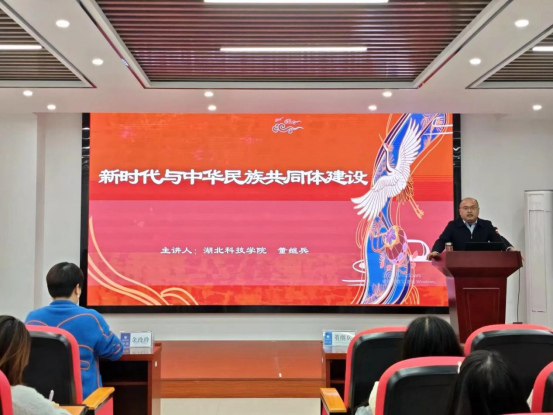 2025年11月13日晚,湖北科技学院人文与传媒学院青马班与青团班全体学员齐聚揽胜楼1505教室,共同聆听“新时代与中华民族共同体建设”专题理论讲座,本次讲座特邀人文与传媒学院党委副书记董继兵同志担任主讲。